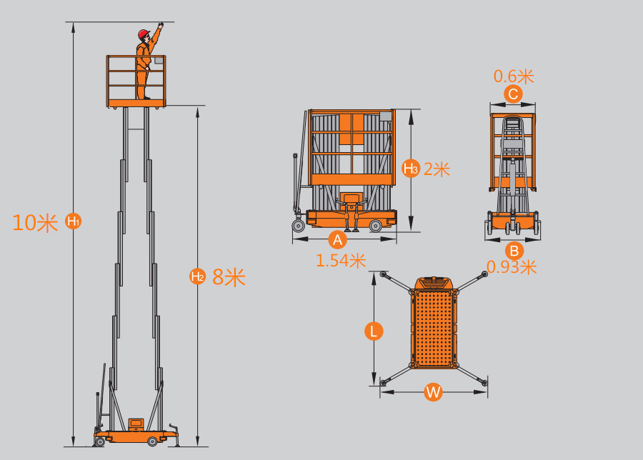 以下是雙柱8米鋁合金升降機的詳細參數(shù)