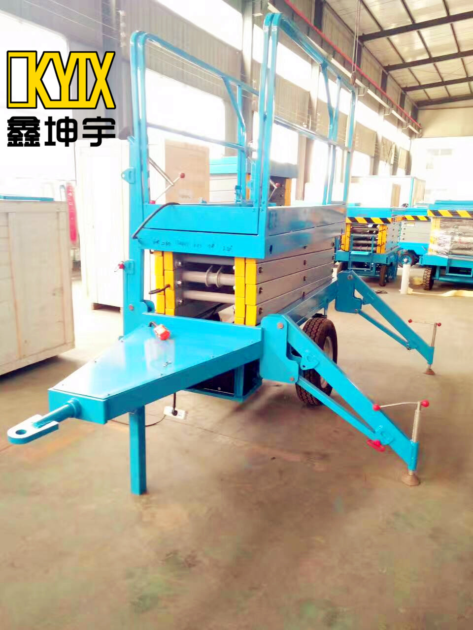該升降機可以使用車輛牽引移動,實現(xiàn)快速移動升降機