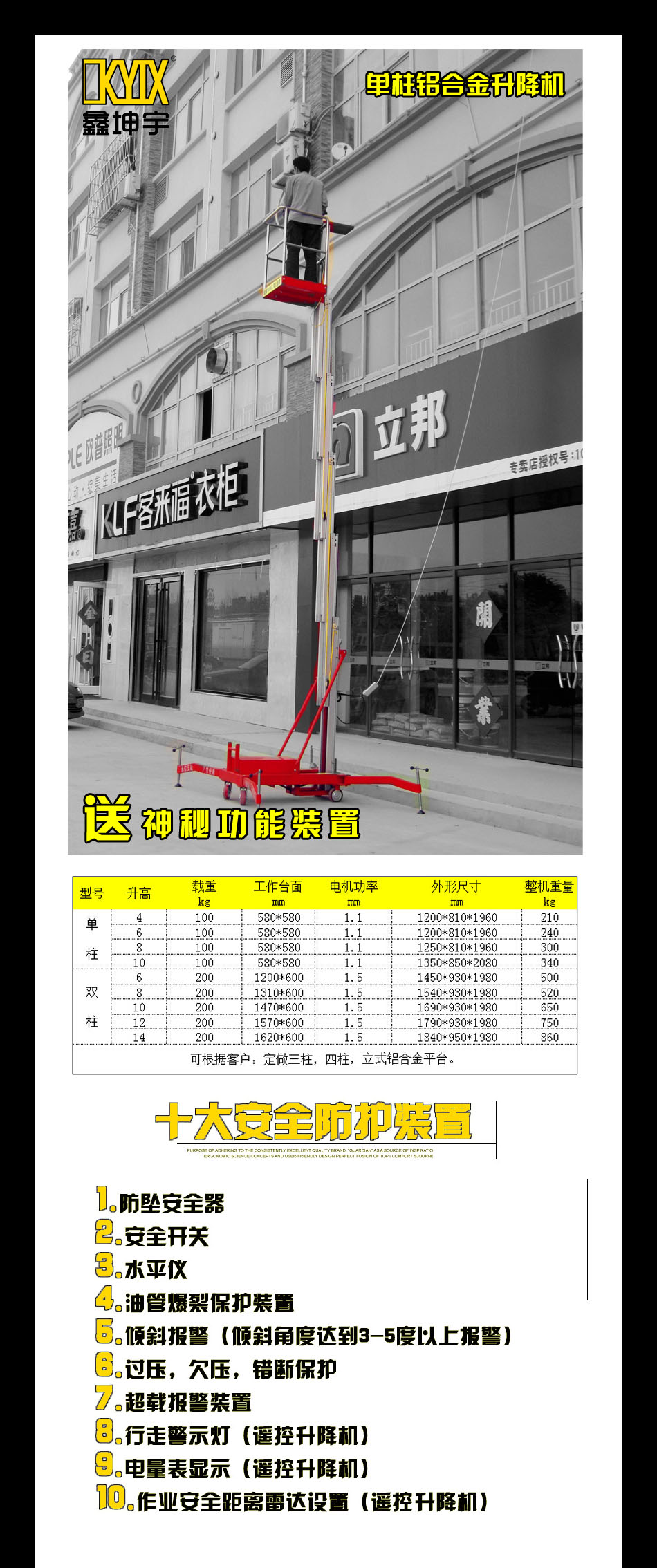 • 單柱鋁合金升降機(jī)升降平臺